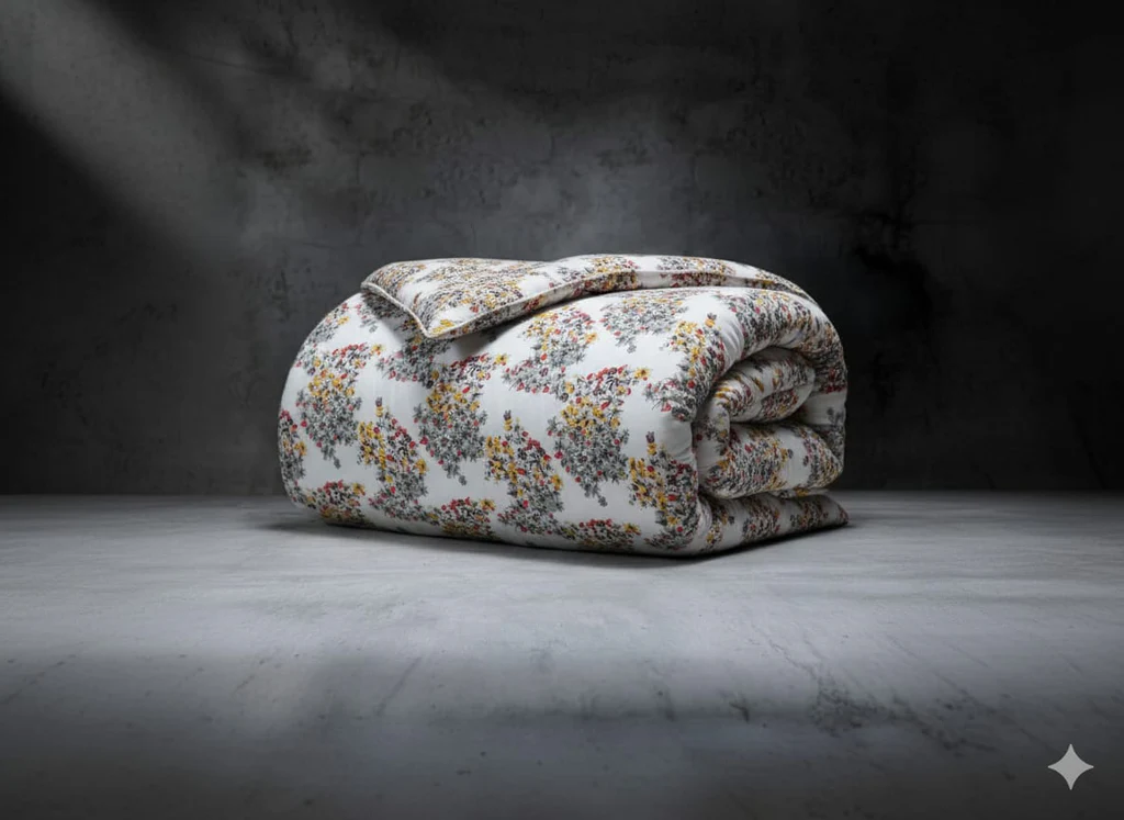 A cozy, breathable comforter designed for year-round comfort. The outer shell is pure cotton for a soft, skin-friendly feel, while the inside poly filler adds lightweight warmth without bulk.